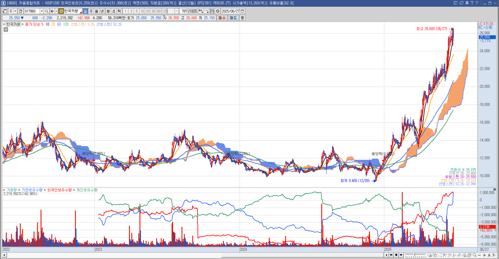 - 시가총액 - 1조3천억 / 52주 최고가 -26,500(6/27 25,300) / 지분관계 - 조연호 외 4인 34.28%, 자사주 2.97%