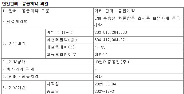 - SB(Secondary Barrier·2차 방벽) 독과점 공급-->(Mark-III 타입을 채택한 중국 조선사향 SB 납품이 작년부터 이어지고 있음)