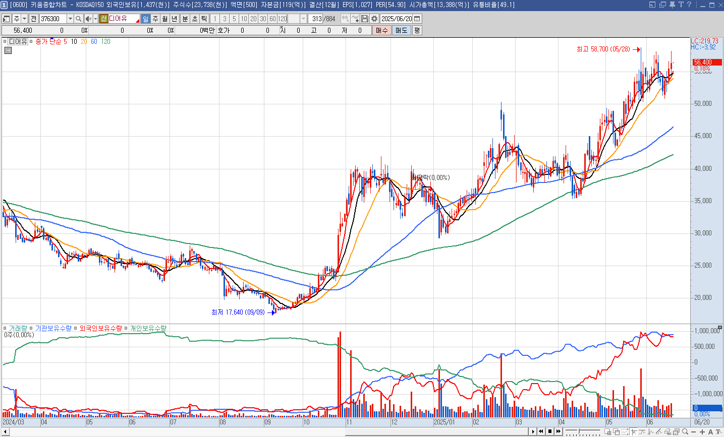 - 시가총액 - 1조 3천억 / 52주 최고가 -58,700(오늘종가-56,400) / 지분관계 - 에스엠스튜디오 50%,제이와이피엔터테인먼트 10%