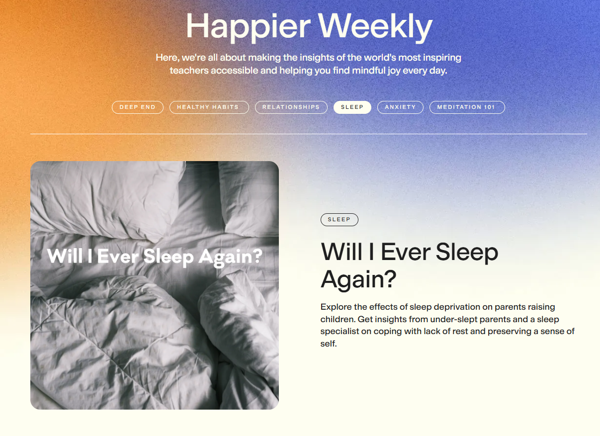 - 다양한 전문가들의 가르침: 댄 해리스 본인 외에도 조셉 골드스타인(Joseph Goldstein), 샤론 살즈버그(Sharon Salzberg) 등 세계적인 명상 대가들의 오디오 및 비디오 레슨을 제공합니다. 다양한 스타일과 주제를 아우르는 풍부한 콘텐츠는 사용자의 필요에 맞춰 선택의 폭을 넓혀줍니다.