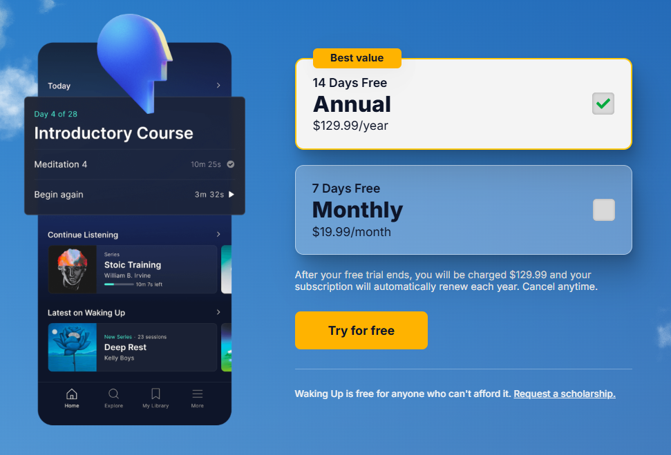 "Waking Up"은 단순한 명상 앱을 넘어, 의식과 존재에 대한 깊이 있는 탐구를 돕는 강력한 도구입니다. 이 앱을 통해 여러분도 내면의 평화를 찾고, 삶에 대한 새로운 통찰을 얻으시길 바랍니다.